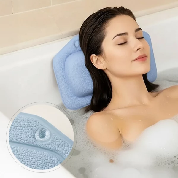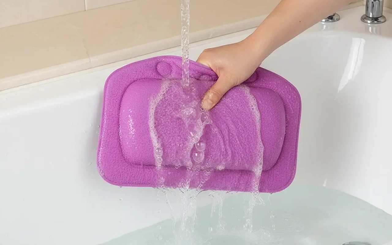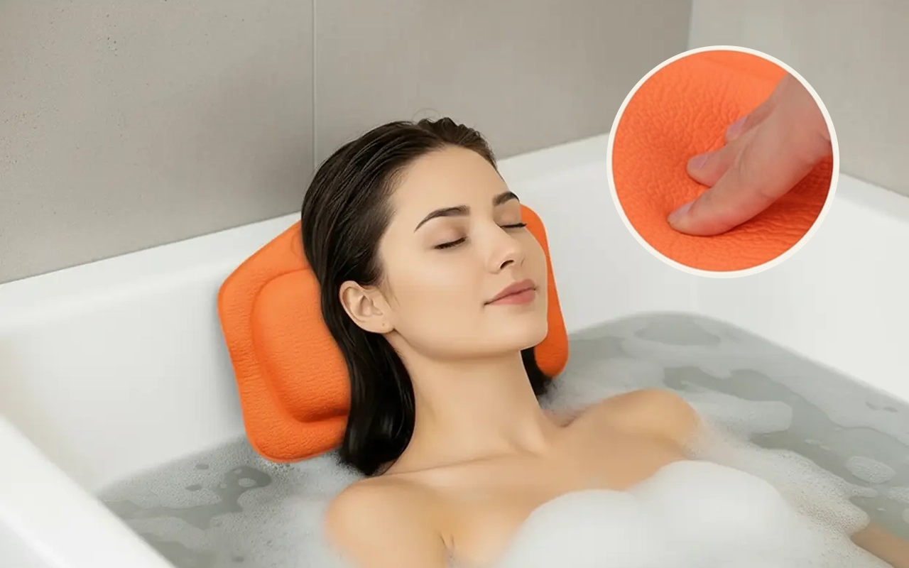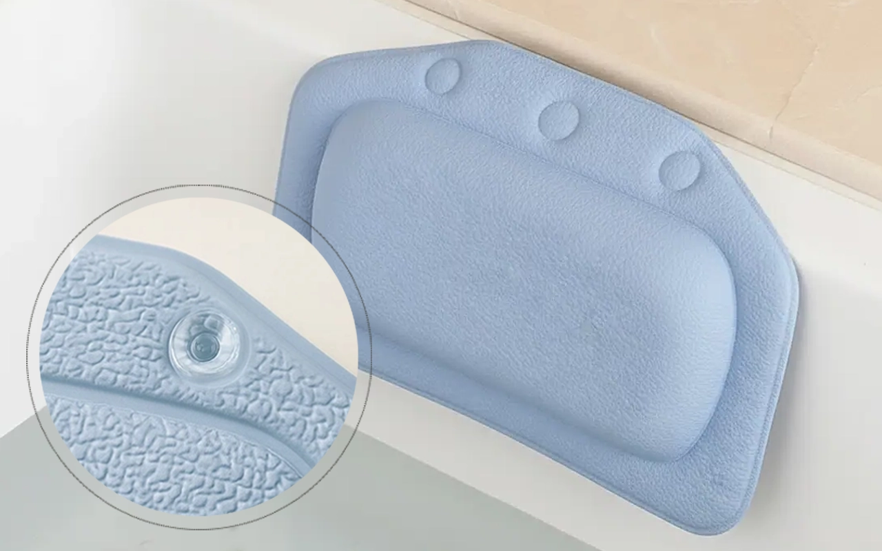 Perfekt til at læse i badet! Puden flytter sig aldrig, selv hvis jeg bevæger mig. Den tørrer hurtigt og lugter aldrig mærkeligt.