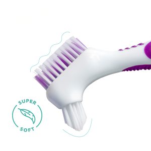 Bløde nylonbørster beskytter sarte dele uden at ridse eller beskadige dem. Din tandprotese får en grundig rengøring, så den ser ud som ny.
