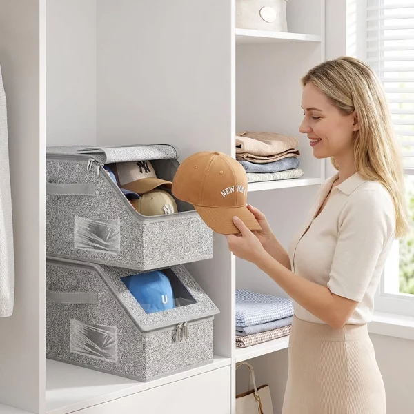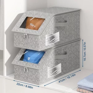 Den stabelbare struktur gør det muligt at få mere plads i smalle skabe. Udnyt hver hylde godt og hold rummet roligt.