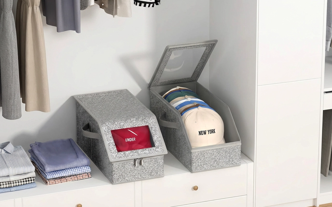 Jeg elsker, at jeg kan se, hvad der er indeni uden at åbne noget. Mine hatte forbliver støvfri og rene, og jeg har ekstra plads til mere på hylderne.