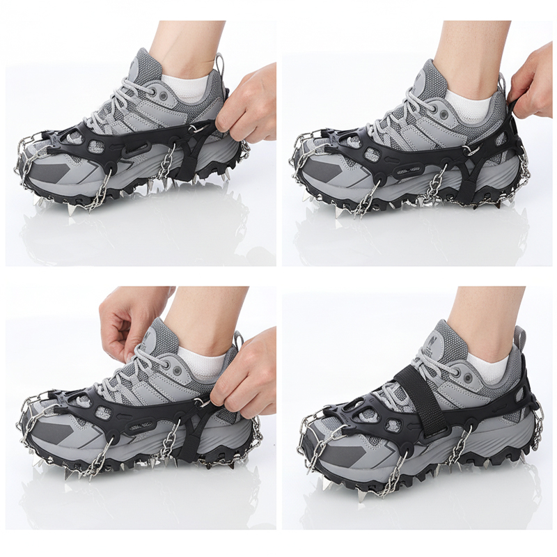 Flerretnings stålspidser forankrer dine fødder på isen. Hvert skridt føles stabilt, uanset om du løber eller vandrer udenfor.