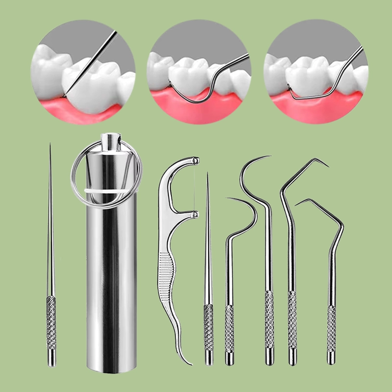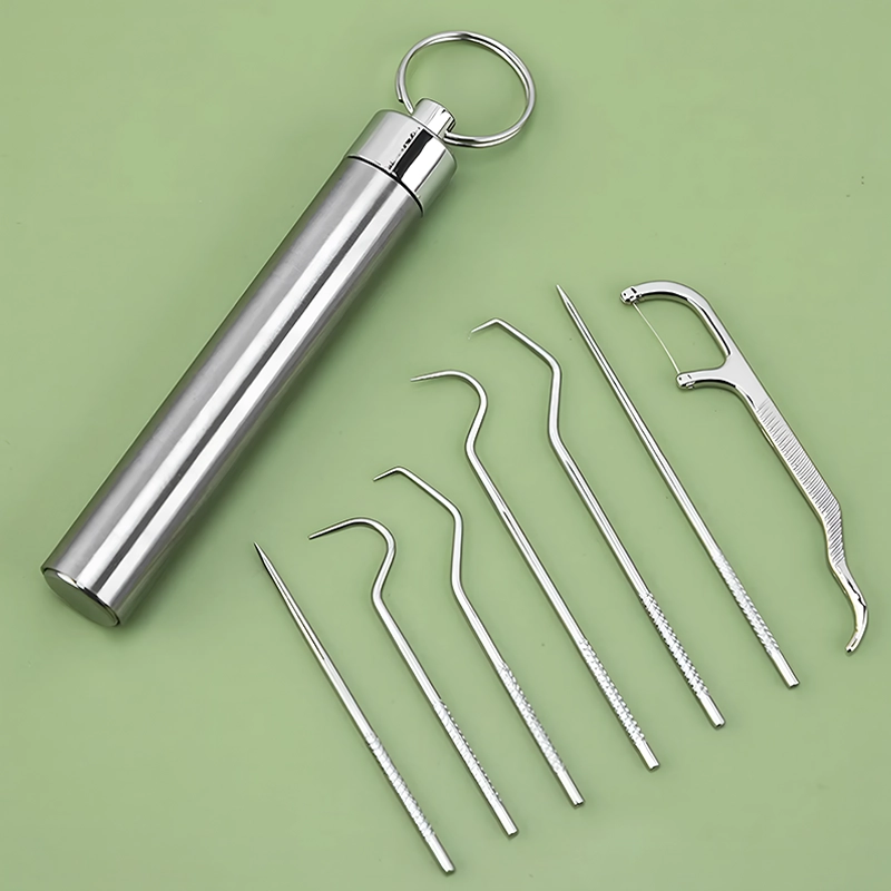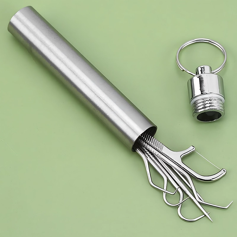 Jeg har altid hadet at bære tandtråd, så jeg prøvede denne ståltandstik. Den er stærk, let at have med, og min mund føles altid ren bagefter.