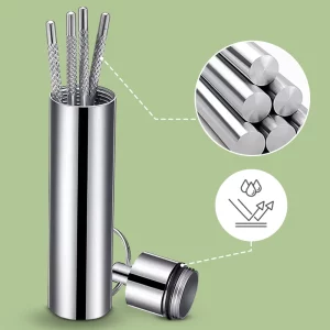 Glem mad mellem kindtænderne og akavede øjeblikke udenfor. Ortorex rustfri stålsæt passer nemt i lommer eller tasker. Vask og brug hvert værktøj igen for en friskere mund. Enkel, hurtig rengøring holder dig smilende hele dagen.