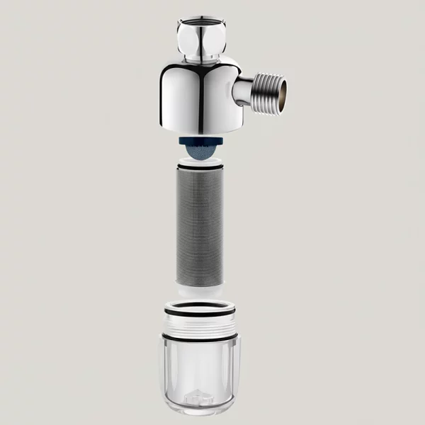 Ortorex filteret passer til vandhaner, brusere og vaskemaskiner. En hurtig drejning forbinder den til næsten alle beslag.