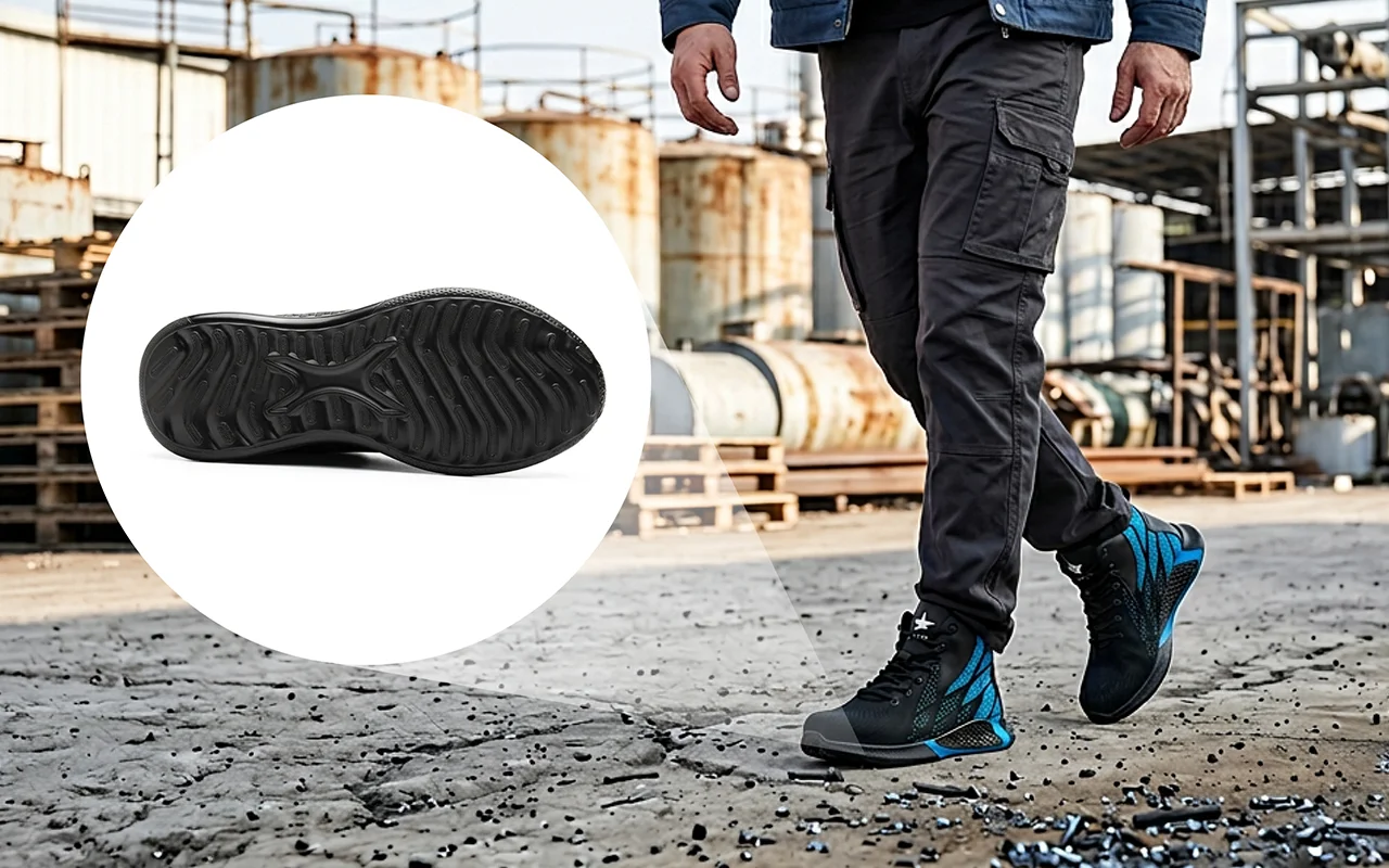 Ortorex-sneakers har mønstrede såler, der griber fat i våde, olierede værkstedsgulve. Sikkert fodfæste mindsker farlige glid og hjælper medarbejdere med at bevæge sig hurtigere og mere sikkert.