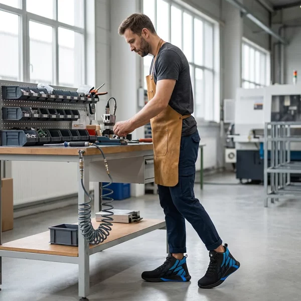 Jeg er chauffør og slæber tunge kasser. Disse ståltå-sko føles lette, beskytter når noget glider ned fra lastbilen, og stødabsorberingen holder min lænd fra at skrige.