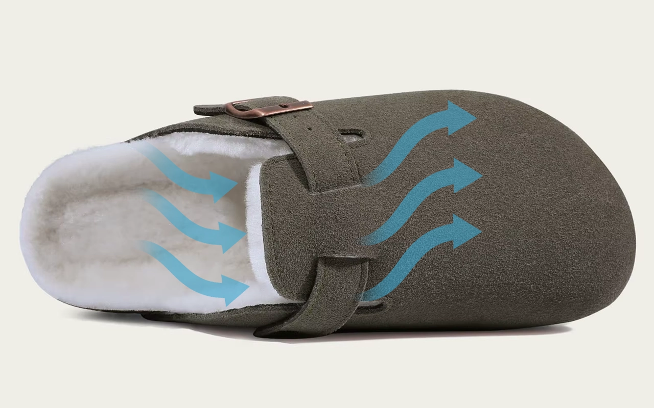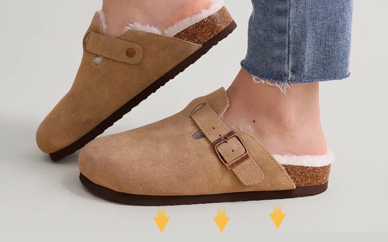 Jeg har disse ruskinds træsko på hver dag—mine fødder bliver aldrig trætte, og svangstøtten holder mig komfortabel selv når jeg står op i timevis på arbejdet.