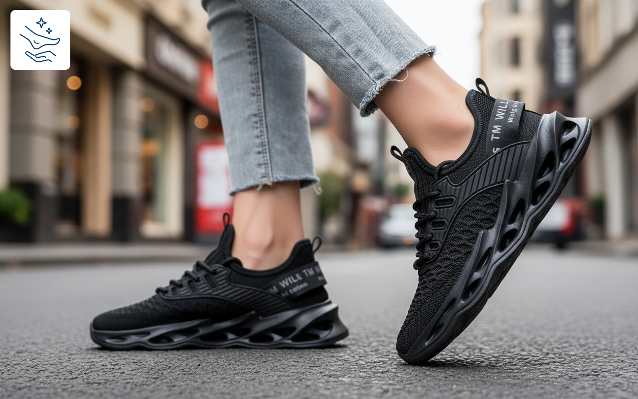 Mesh-overdelen hjælper med at holde huden tør og frisk. Sig farvel til svedig ubehag i travle dage.