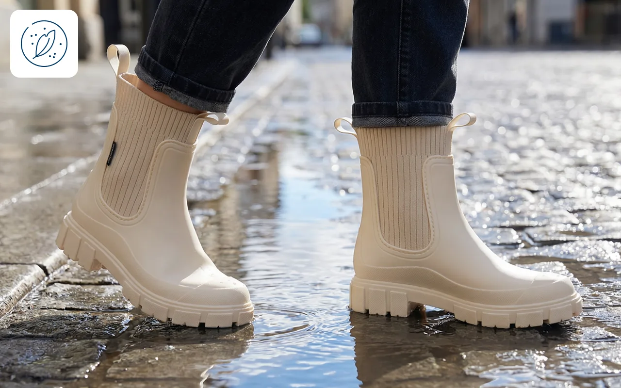 Regnen holdes ude, mens dine fødder forbliver varme og friske. Gå rundt i byen selv når pytterne dækker gaden.