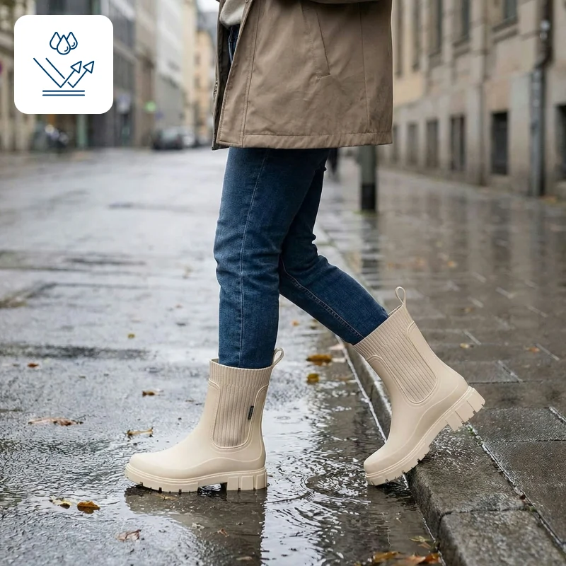 Regnen holdes ude, mens dine fødder forbliver varme og friske. Gå rundt i byen selv når pytterne dækker gaden.