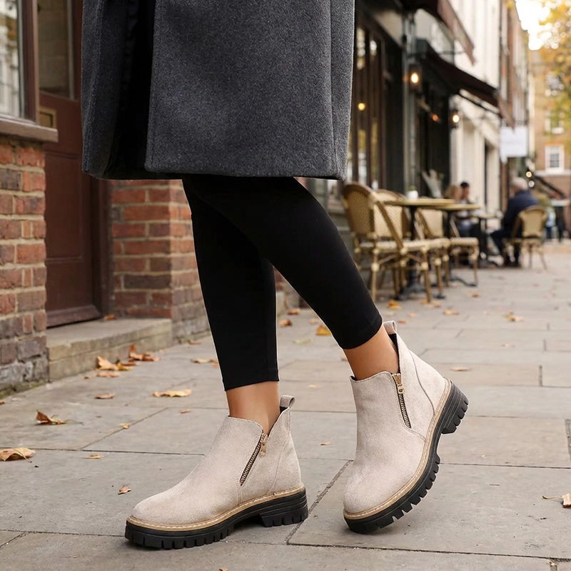 Det er hurtigt og nemt at komme i skoene med lynlåsen i siden. Ikke mere besvær med stramme eller komplicerede lukninger.