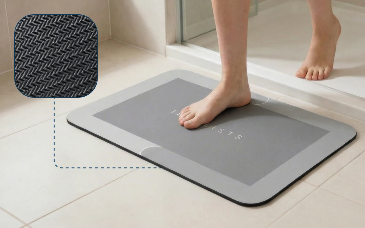 Fugten forsvinder næsten øjeblikkeligt, så fødderne forbliver behagelige. Ingen flere våde pletter eller gennemvædede tæpper efter hvert bad.
