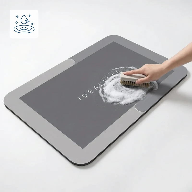 Har aldrig set vand forsvinde så hurtigt. Måtten føles altid tør, når jeg bruger den, hvilket er fantastisk. Rengøringen klares med en hurtig aftørring—så let.