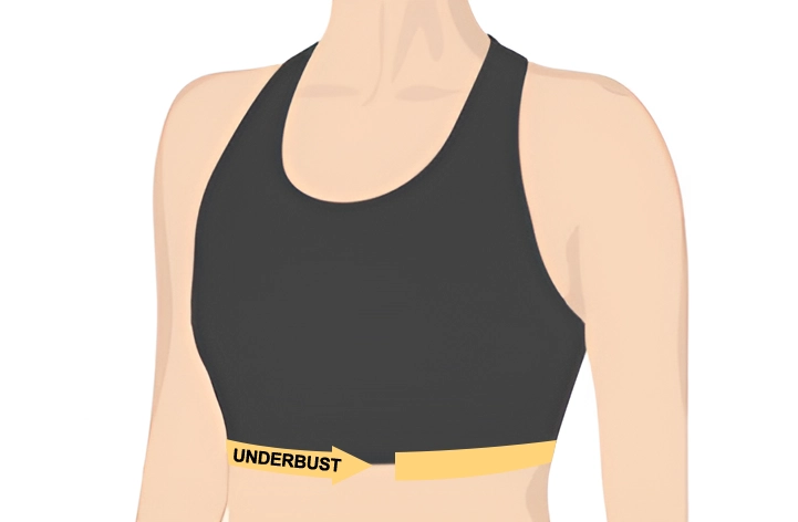 - 2. For at finde målet under barmen, læg målebåndet rundt om din brystkasse, direkte og jævnt under barmen.