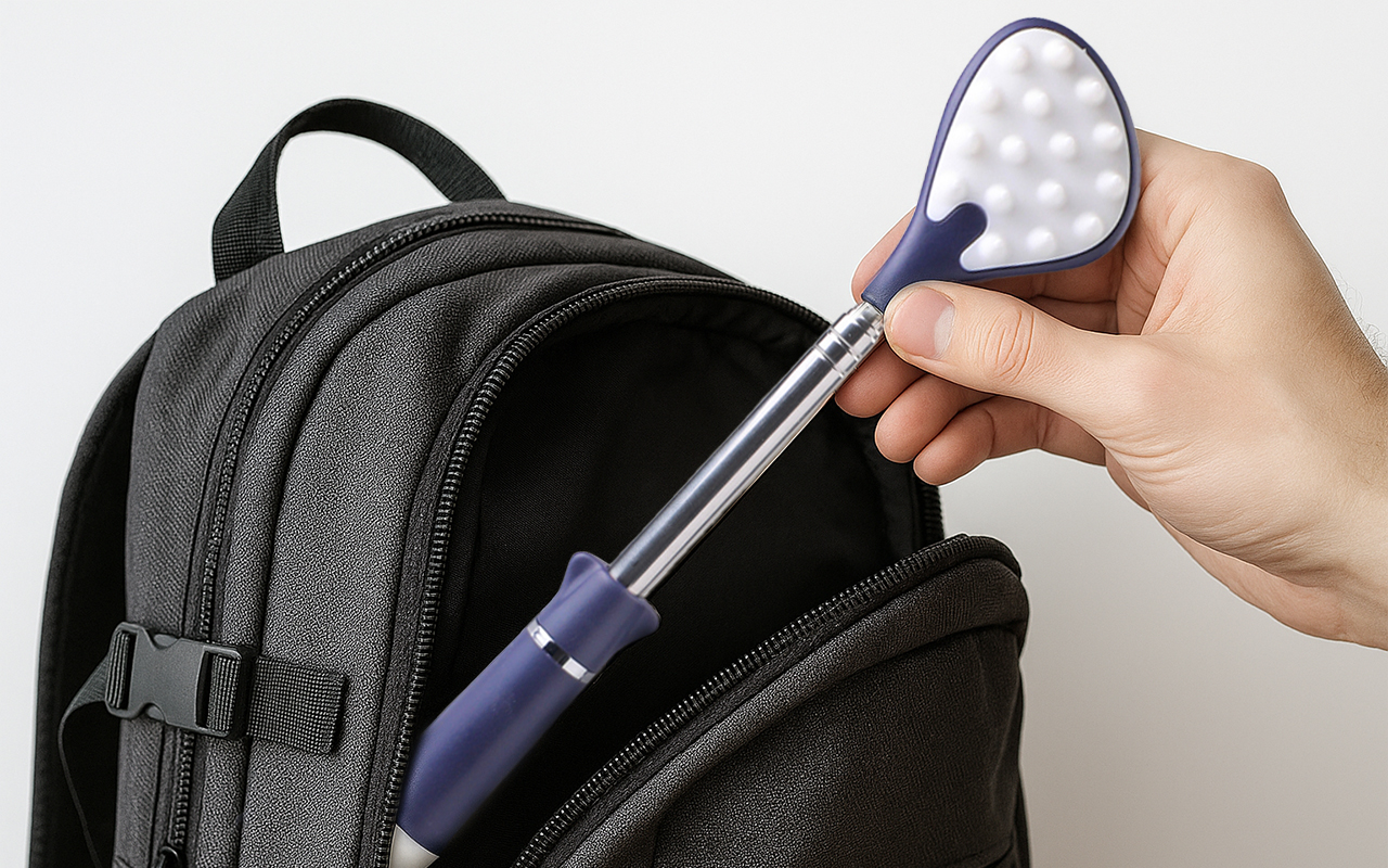 Den kan være i min taske, så hvis min ryg klør på arbejdet, er jeg dækket ind. Måden den kan forlænges på er super nyttig til svære steder.