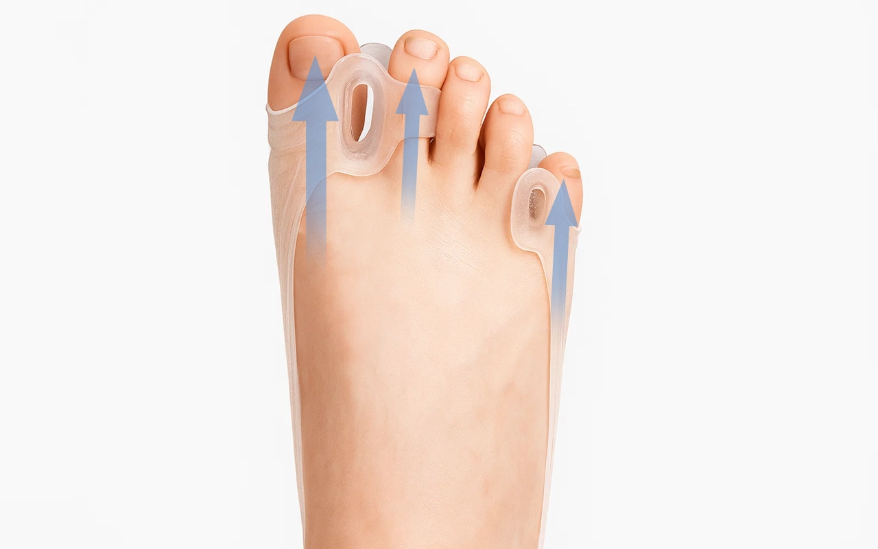 Hjælper med at rette tæerne op uden ubehag eller pres. Holder hvert led stabilt, så bevægelser føles glidende.
