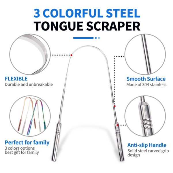 ✔️ FOREBYGGER BACTERIEVÆKST – Vores tungeskraber i rustfrit stål har antibakterielle egenskaber, der gør det nemt at fjerne giftstoffer og forhindre bakterier i at vokse, ikke kun på tungen, men også på selve skraberen.