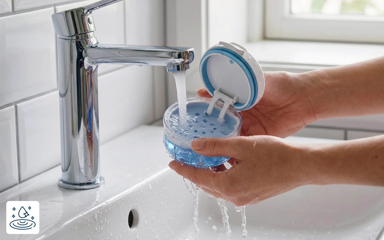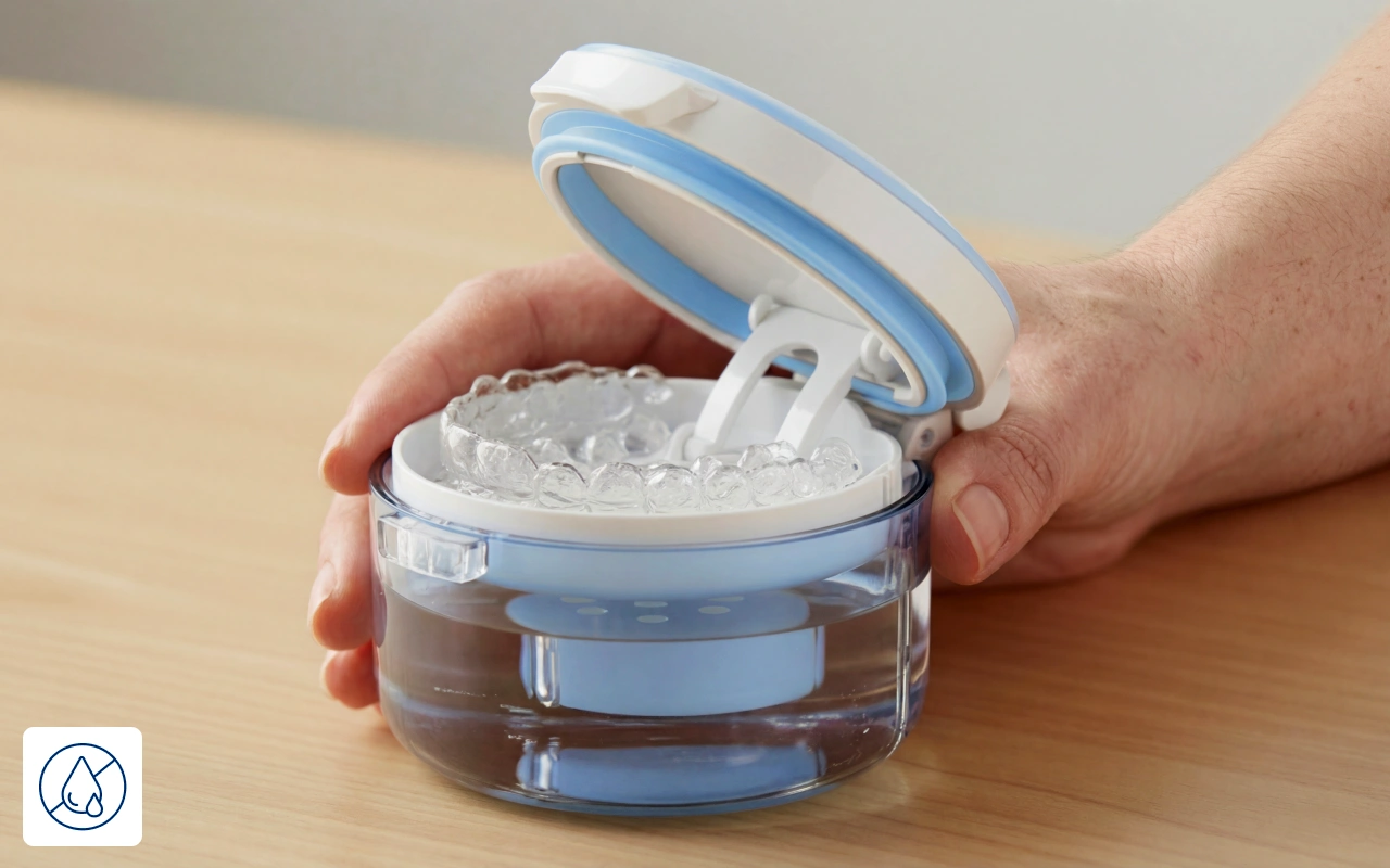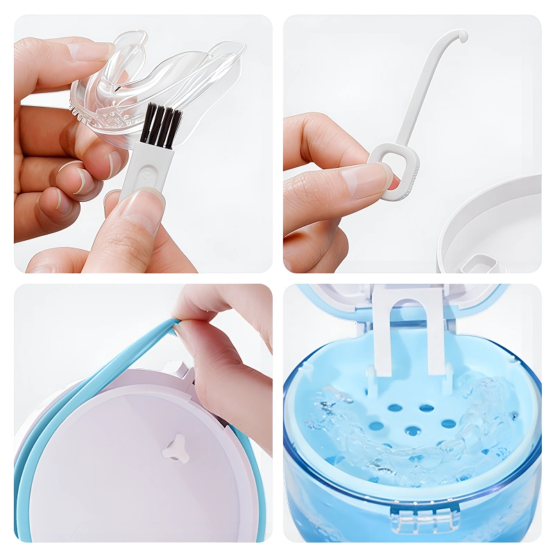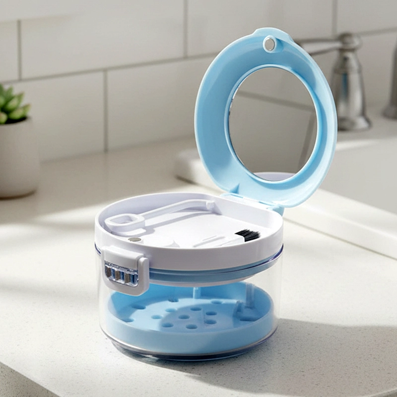 Købte dette etui til min mands delproteser. Tæt lukning holder støv ude, og jeg kan godt lide, at jeg kan køre det hele i opvaskemaskinen hver weekend.