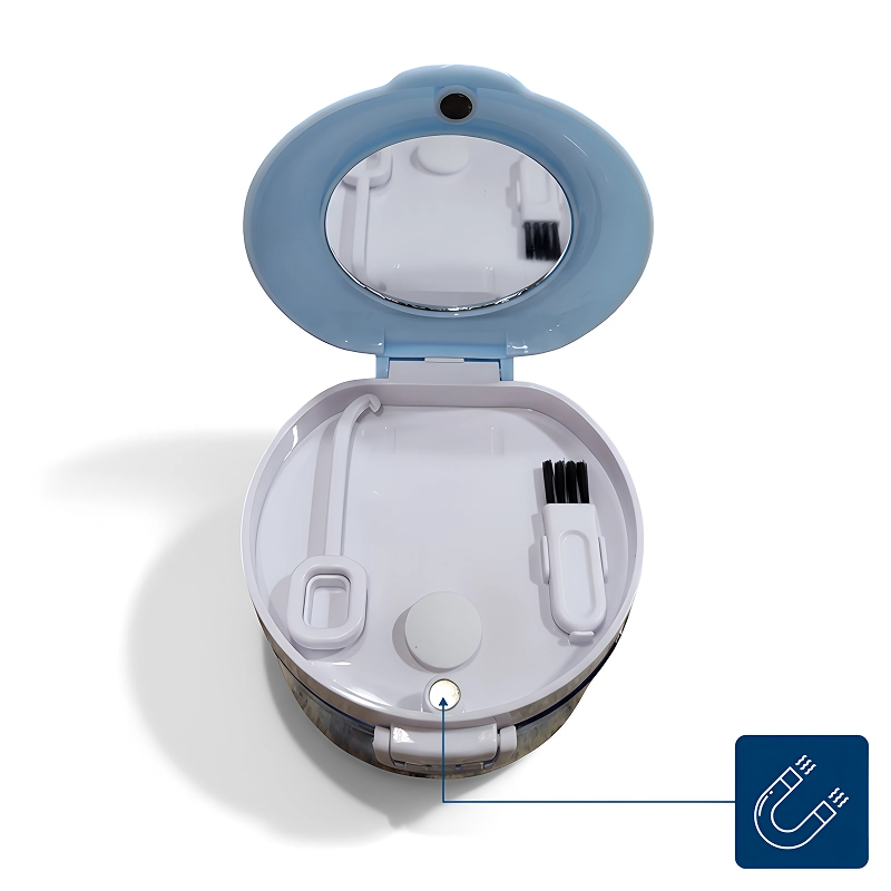 En stærk lukning forhindrer vand eller støv i at komme ind. Dine tandplejeartikler forbliver beskyttede og sikre mod skader.