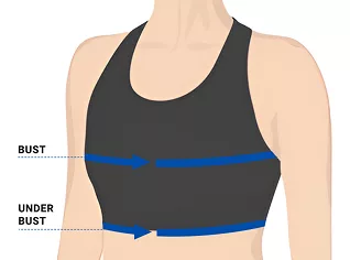 - 3. For at finde underbustemålet skal du vikle målebåndet rundt om din ribbenkasse, lige og jævnt under dit bryst.