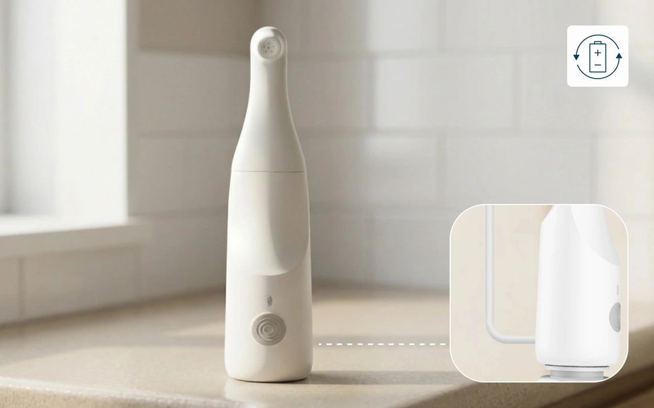 Ortorex bidet gør personlig pleje nem overalt, hvor du rejser. Den passer til de fleste flasker til øjeblikkelig brug og giver komfort hurtigt. Det stænksikre design holder alting rent og tørt. Opladning er enkel og holder i uger uden bekymring.