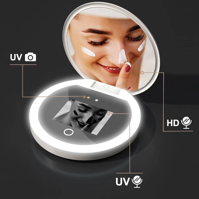 Så klogt et spejl! UV-lyset overraskede mig ved at afsløre områder, jeg helt havde misset. Jeg har ikke fået solskoldninger siden jeg begyndte at bruge det.