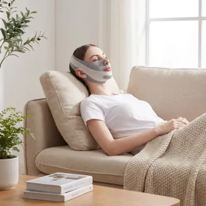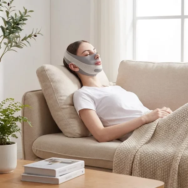 At bruge V-line masken, mens jeg ser tv, er blevet min rutine. Den sidder blidt, klør ikke, og min profil fra siden ser nu meget skarpere ud.