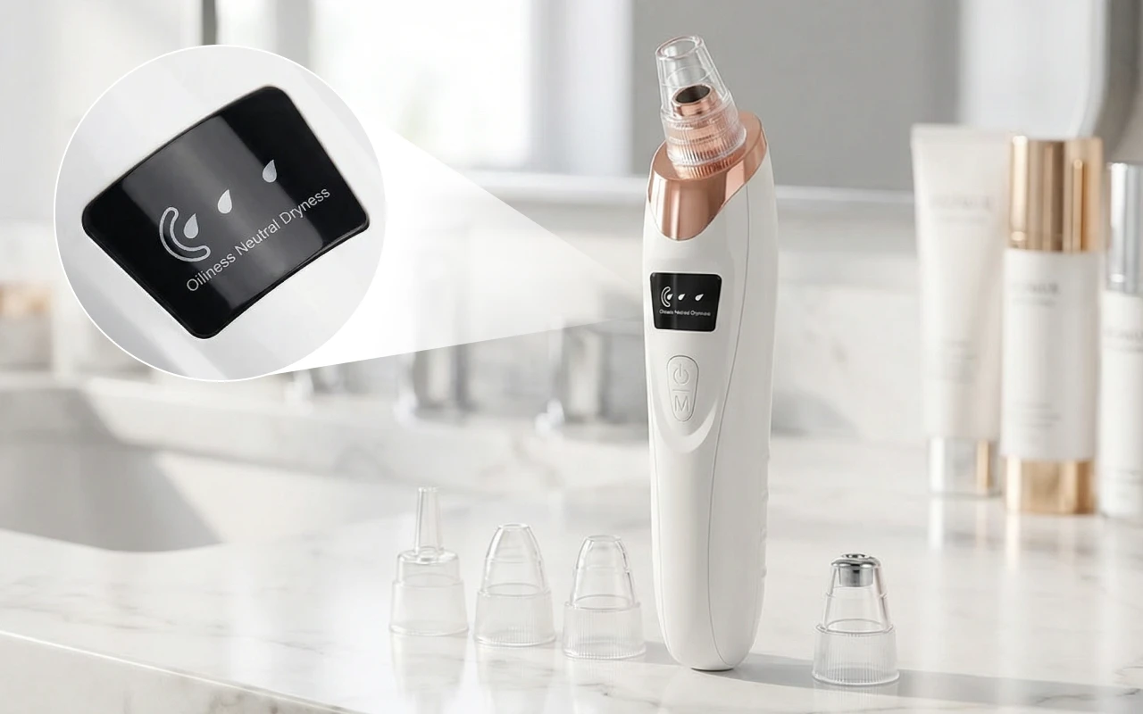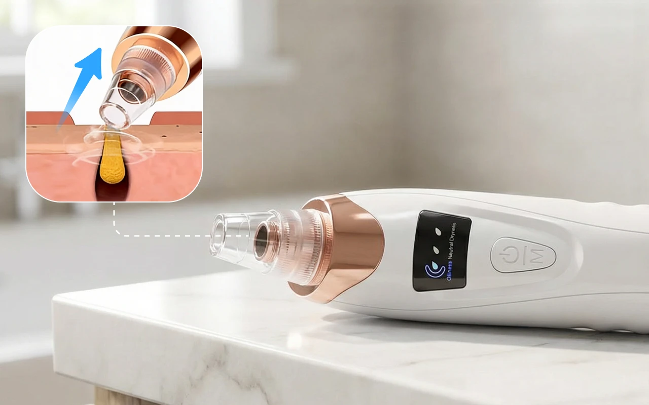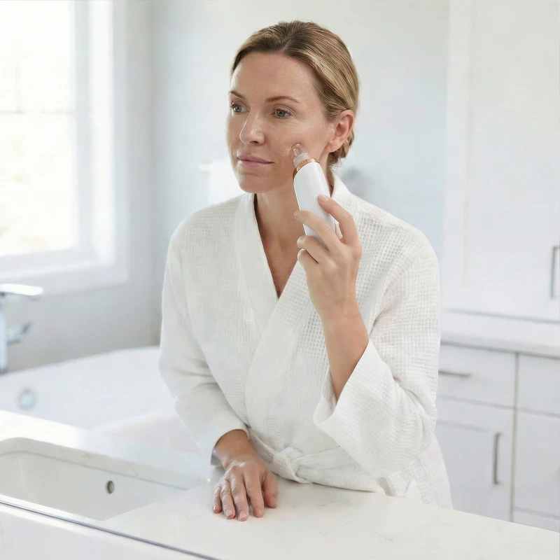 Denne lille sugeenhed er så nem at bruge. Jeg kan vælge den styrke, jeg har brug for, alt efter hvilken del af ansigtet jeg renser. Ingen smerte, bare renere hud.