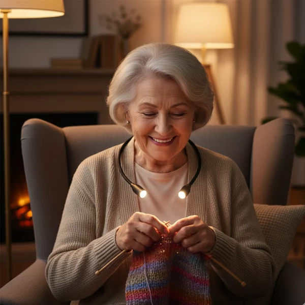 Nyd sene aftener med bøger eller håndarbejde med Ortorex nakkelampe. Bøj let armene for perfekt belysning hver gang du læser. Vælg mellem tre blide farver, der passer til dine øjne og humør. Brug den i timevis uden at føle pres eller ubehag.