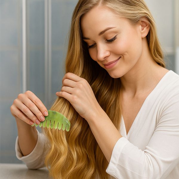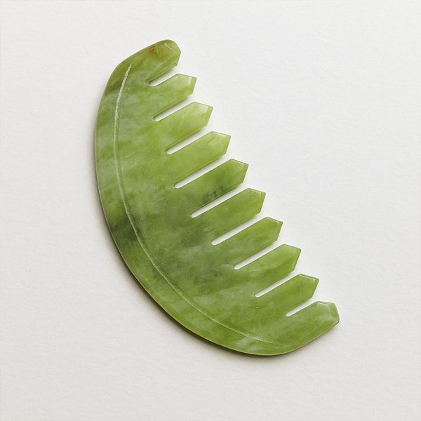 Jeg elsker, hvordan den udfiltrer mit våde hår uden at gøre ondt. Jadekammen føles altid kølig og beroligende mod min hovedbund, hvilket er så afslappende.
