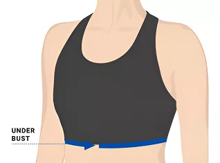 - 2. For at finde omkredsen under brystet, skal du placere målebåndet rundt om din ribbenkasse, direkte og jævnt under brystet.
