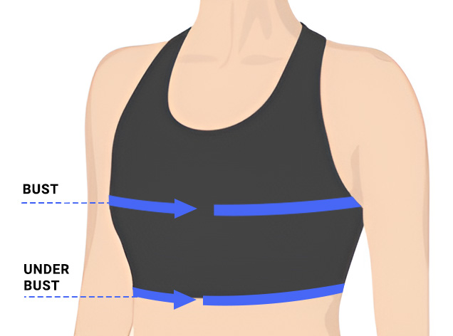- 2. For at finde målet under barmen, vikler du målebåndet rundt om din brystkasse, direkte og jævnt under barmen.