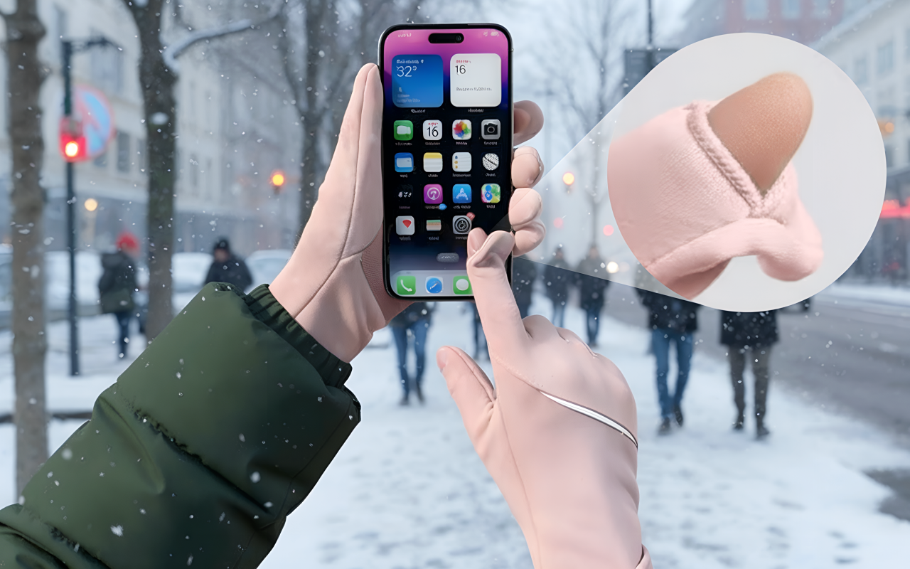 Stryg, tryk eller skriv beskeder ubesværet i koldt vejr. Handskerne fungerer perfekt med enhver enhedsskærm.