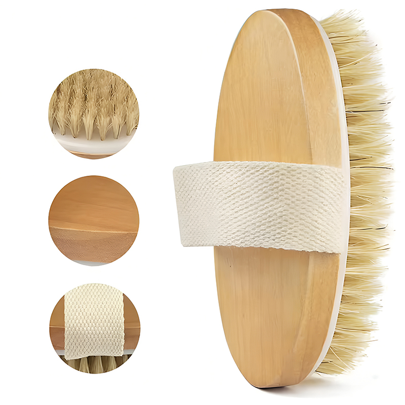 Vores brusebørste giver en perfekt balance til rens og massage. Børsterne forbedrer blodcirkulationen, eliminerer kroppens cellulite og overskydende fedt.