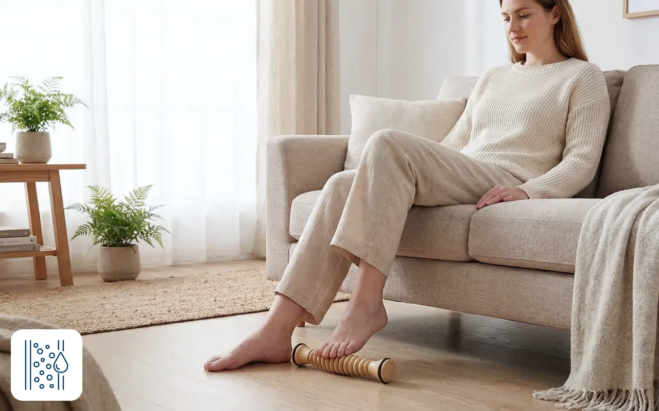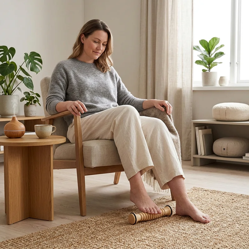 Jeg bruger rullen, mens jeg læser på sofaen. Det er mærkeligt beroligende, næsten som en lille massage, og mine fødder forbliver varme og afslappede bagefter.