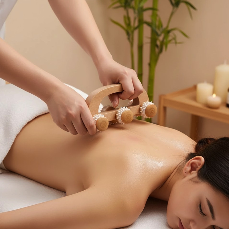 Miljøvenlig trækonstruktion betyder, at ingen hård plastik rører huden. Blide silikonespidser gør hver session afslappende og sikker.