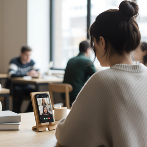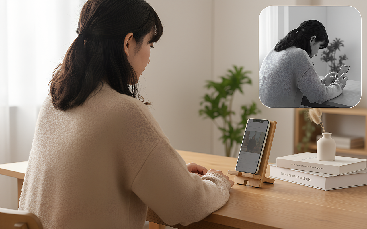 Denne træholder holder min telefon stabil til online-undervisning. Mine hænder er fri til at tage noter, og min nakke gør ikke længere ondt!