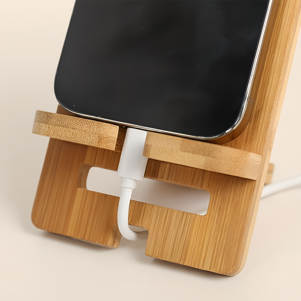 Hold din enhed oprejst, mens du nyder din skærm. Ortorex træstander holder din telefon stabil i ethvert rum. Designet for komfort, så du kan bruge din telefon uden akavede vinkler. Den naturlige bambusoverflade ser stilfuld ud og passer til ethvert skrivebord.
