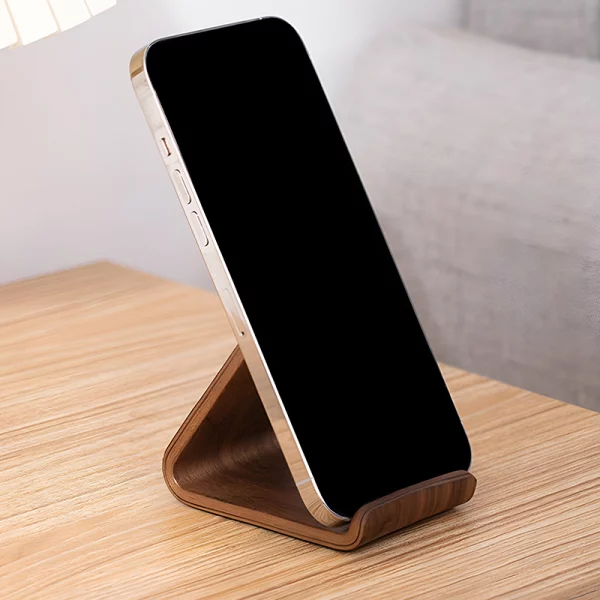 Så fed stander! Træet er super glat, og holderen gør det meget nemmere at finde min telefon. Ser fed ud ved siden af min computer.