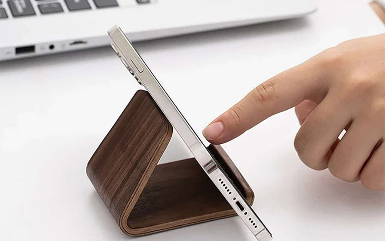 Præcis hvad jeg manglede til mit hjemmearbejds-setup. Min telefon er altid nem at se, og træet gør det hele pænt og hyggeligt.
