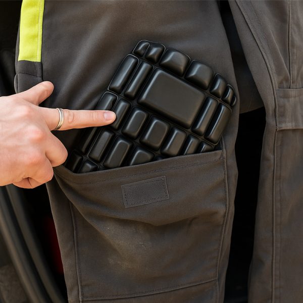 Jeg arbejder i byggebranchen og skal ofte ned på knæ. Skumpolstringen forhindrer mine knæ i at gøre ondt, og de bliver siddende hele dagen.